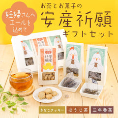 お茶とお菓子の安産祈願ギフトセット(きなこクッキー・ほうじ茶・三年番茶ティーバッグ)