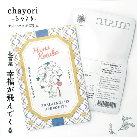 Chayori's flower language series allows you to send your feelings along with your tea. On the front is a bouquet of flowers, and on the back is the meaning of the flowers and a message to the sender.
