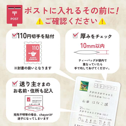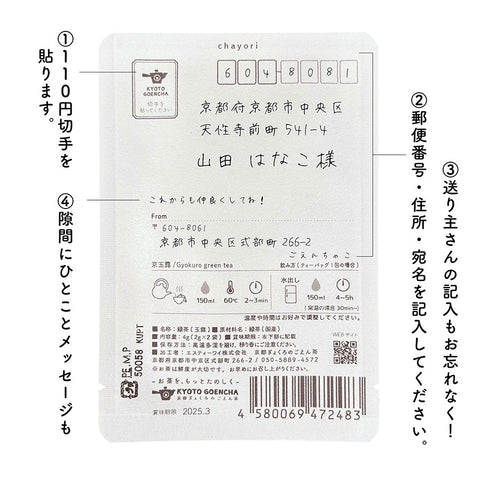 Inside the postcard are two fragrant brown rice tea bags. We will deliver a sense of warmth along with your message.