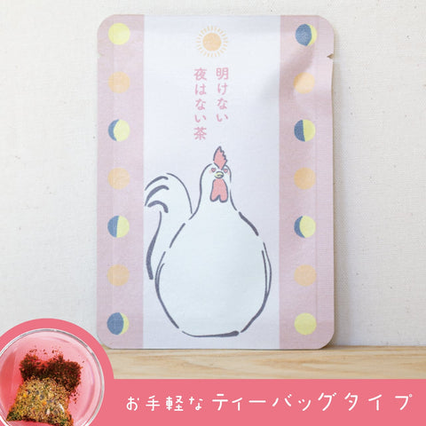 Name: Hanagyo-kuro <br>Ingredients: Green tea (gyokuro), hibiscus, chamomile <br>Contents: 2g (1 bag)