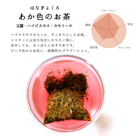 元気な気分になりたい時に。ピンク色から赤色に、美と健やかさを感じる、あか色のお茶。