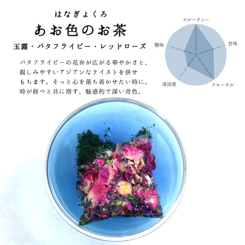 じんわりと広がる幻想的なお色にうっとりな、あお色のお茶。