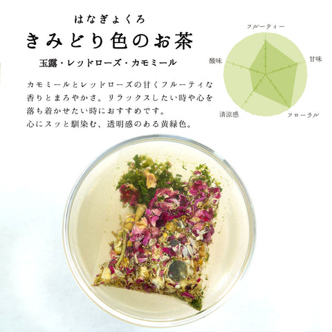 カモミールとローズが入った、甘いフルーティな香りを楽しめる癒やし効果の高いブレンド。