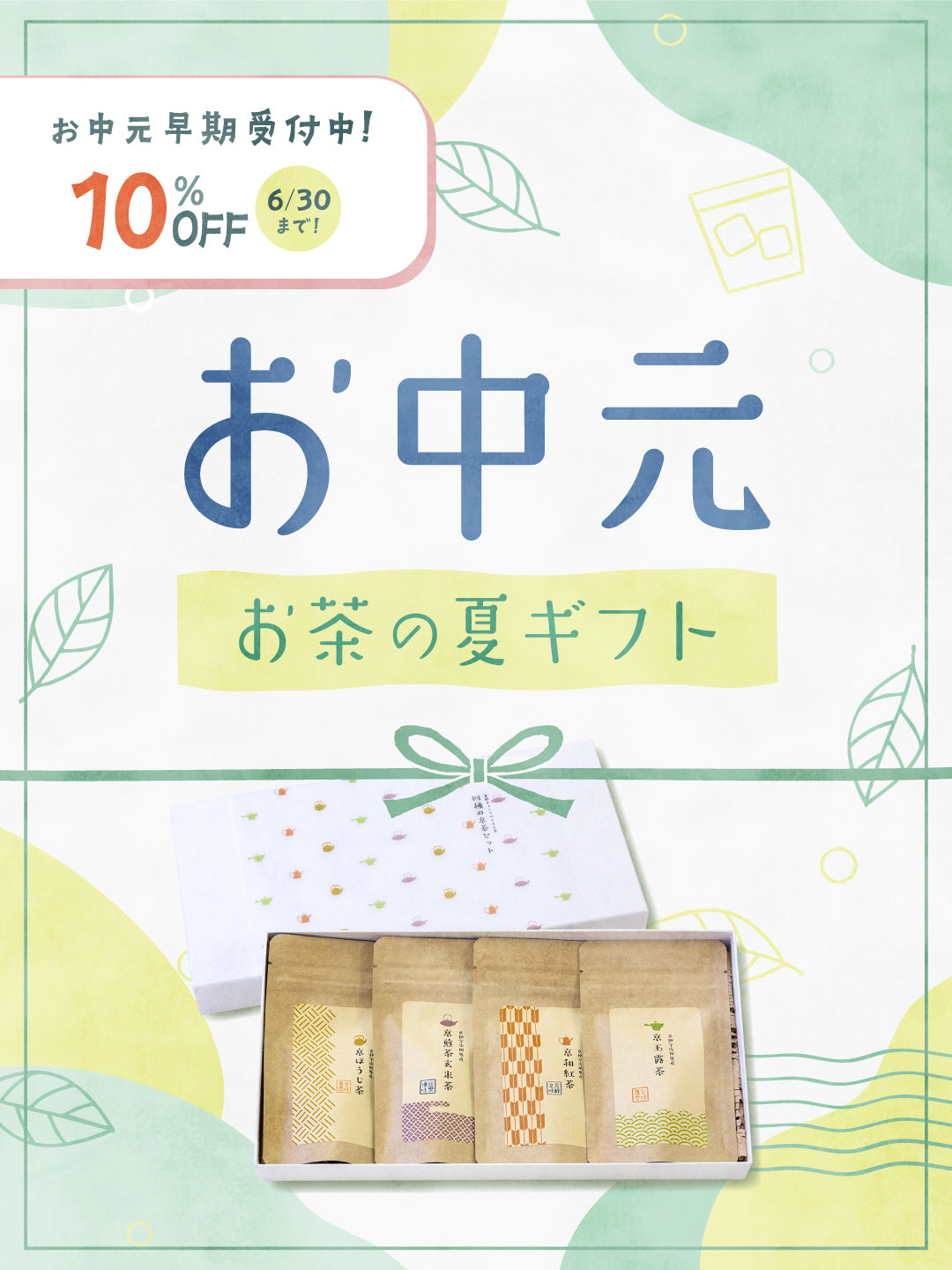 ショッピングカートの「ラッピング・のしを設定する」ボタンから、ご希望のラッピングシールをご指定ください。ごえん茶で心を込めてセットして、お届けいたします。