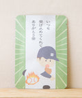 ピッチャーが投げているイラストながら、「いつも受け止めてくれてありがとう」というメッセージが入ることで、ボールの向こうでミットを構えるキャッチャー、バッテリーの熱い青春を感じさせるというナイスネーミング!!!