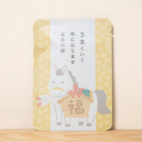 白馬はとっても縁起の良い福ものさん。この玉露茶を飲めば、2026年は何事もウマくいくこと間違いなしっ!